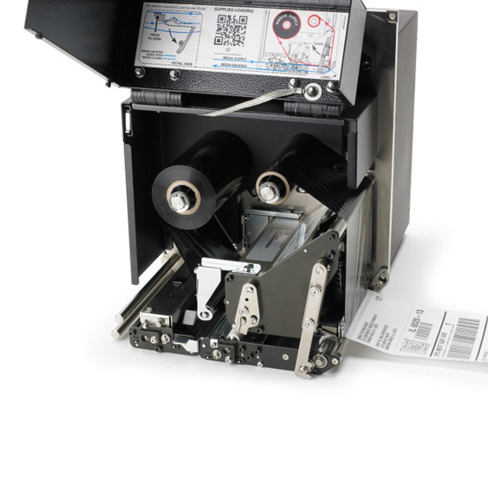 La tête d’impression largement ouverte facilite le nettoyage et le système d’entraînement modulaire permet d’intervenir sur le systeme plus rapidement. Les fonctionnalités RFID ont été élargies et les opérations de routine comme le changement de ruban sont simples et ne posent aucune difficulté. Le nouvel écran graphique peut être déplacé ou retourné pour facilité l’intégration du bloc dans le systeme d’impression pose.